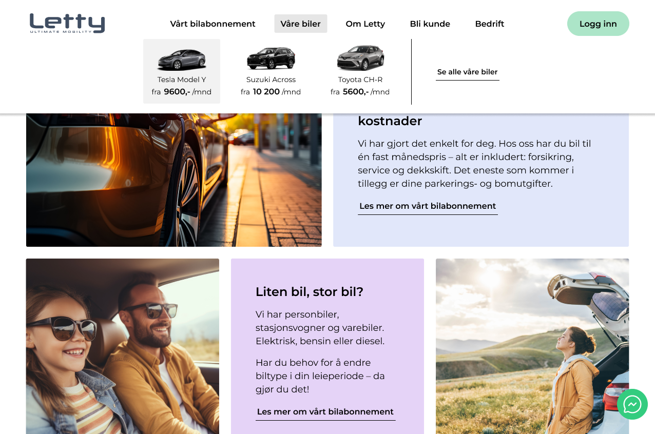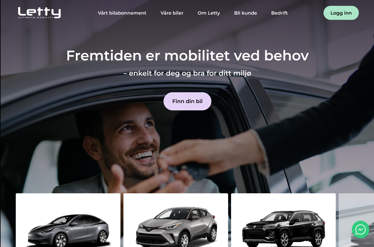 Designforslag til nettside for nytt selskap; Letty. Nettsiden er først rettet mot bilbransjen deretter mot privatbruker.