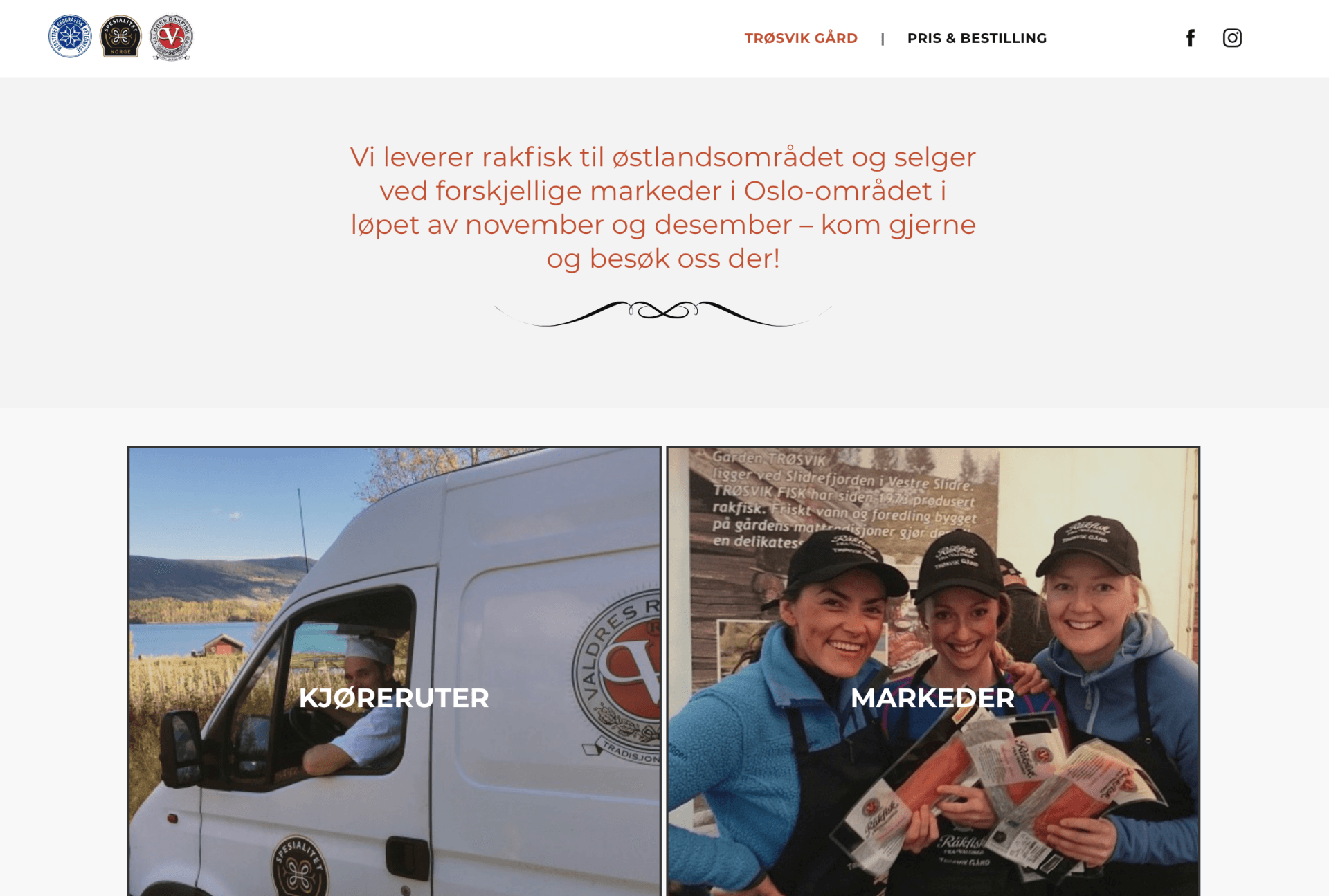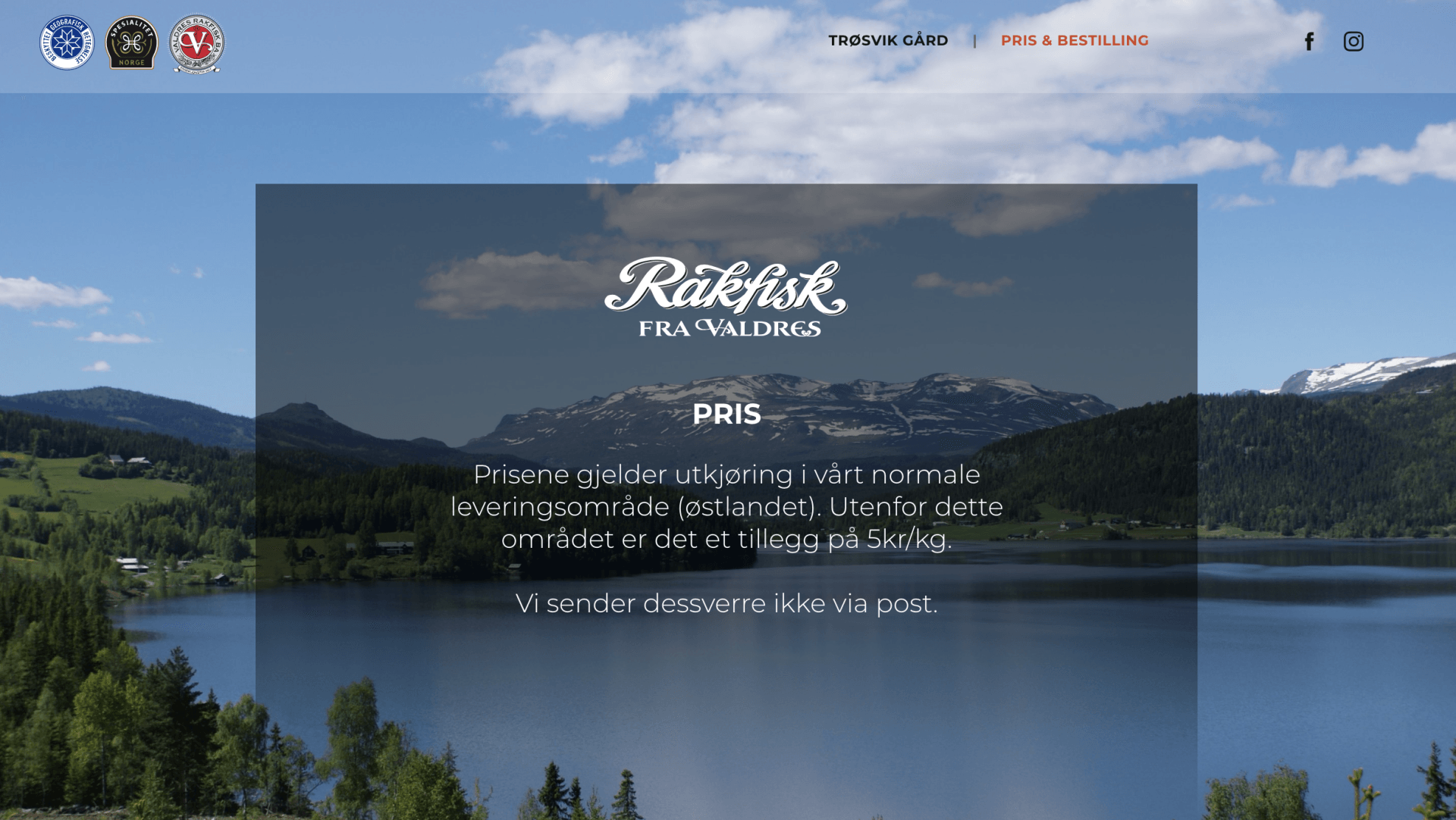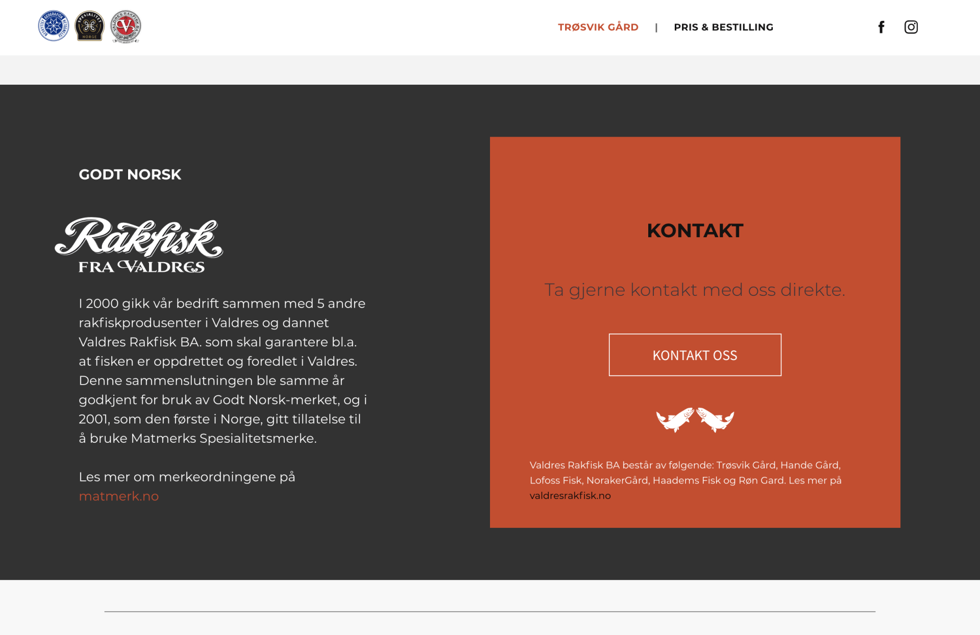 Trøsvik Gårds nettside viser deres tilbud og inneholder bestillingsseddel for deres produkt.